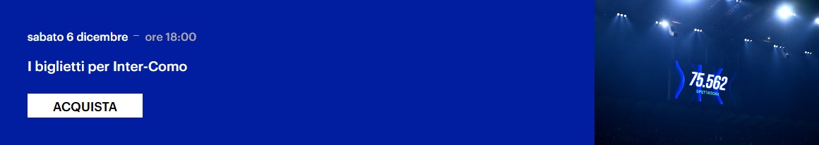 Dopo la vittoria per 5-1 in Coppa Italia contro il Venezia, l'Inter ritrova subito i suoi tifosi a San Siro. I nerazzurri si preparano ad affrontare il Como nella 14ª giornata di campionato: la gara è in programma sabato 6 dicembre alle 18:00 al Meazza.