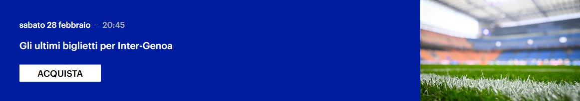 Gli ultimi biglietti sono in vendita su inter.it/tickets: Inter-Genoa è la partita Speciale dedicata agli Inter Club, i Soci o i possessori della Tessera Siamo Noi possono ancora acquistare i tagliandi per il Terzo Anello Blu a solo 1 €!