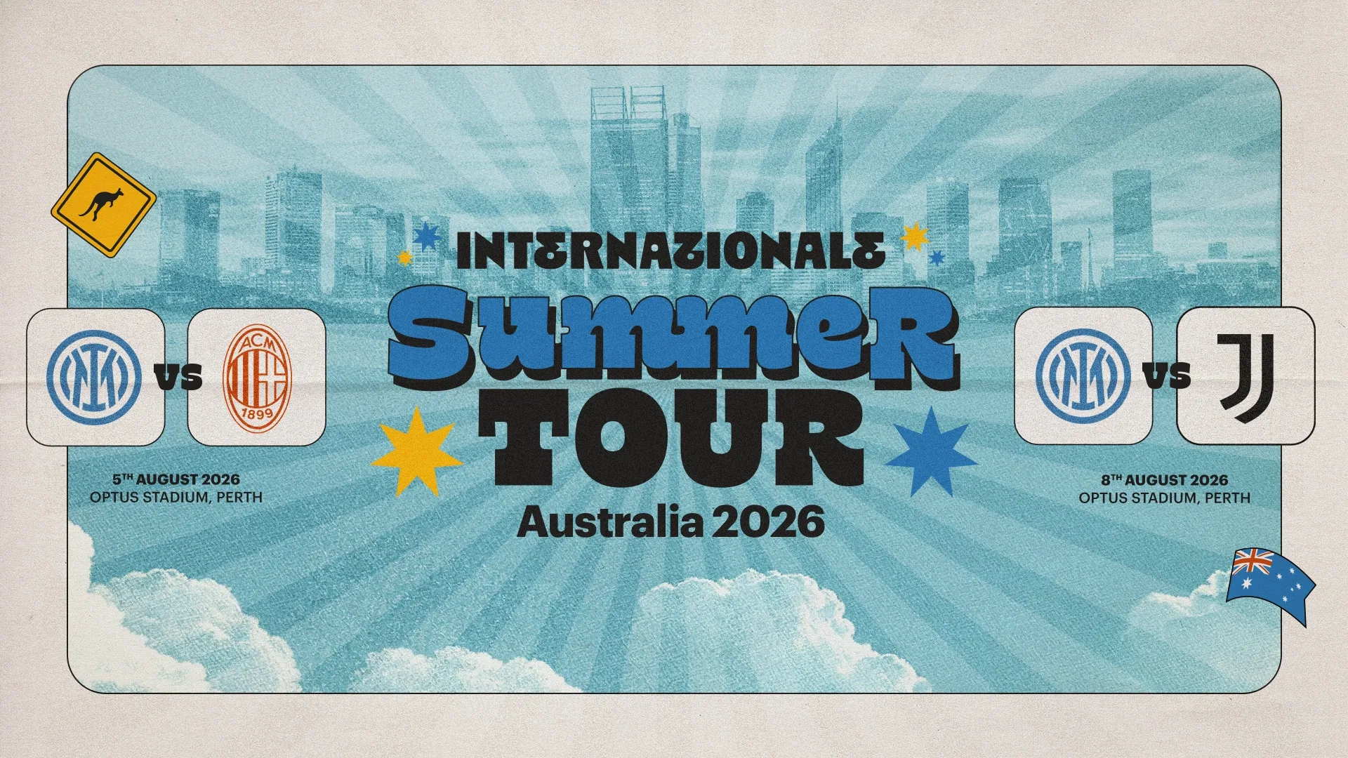 Sfide affascinanti in una cornice speciale: l’Australia si prepara così ad accogliere l’esordio assoluto dei nerazzurri nel continente. La prevendita dei biglietti per assistere alle due gare inizierà martedì 14 aprile, mentre la vendita libera prenderà il via mercoledì 15 aprile.