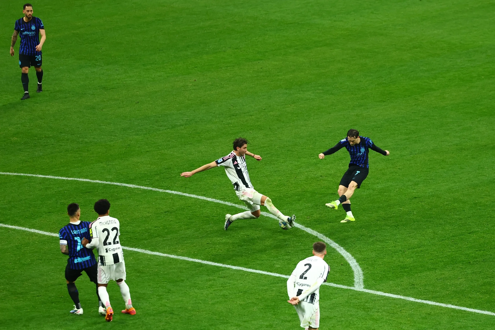 Si affrontano i tre giocatori di Serie A che dallo scorso agosto hanno realizzato il maggior numero di gol da fuori area considerando tutte le competizioni: Nico Paz (cinque), Piotr Zielinski (quattro) e Hakan Çalhanoglu (quattro).